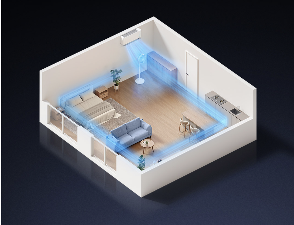 Традиционные кондиционеры часто создают зоны с разной температурой — холодные и теплые участки, которые снижают общий комфорт. Xiaomi решает эту проблему с помощью инновационной системы двойного обдува.