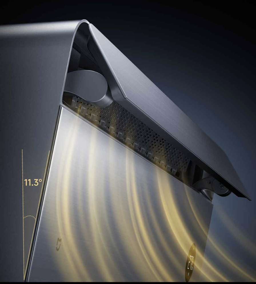 Инновационный дизайн обеспечивает четырехсторонний обдув (верх/низ/лево/право), создавая равномерное распределение воздуха без сквозняков. Мощный воздушный поток до 830 м³/ч гарантирует быстрое достижение комфортной температуры во всем помещении.
