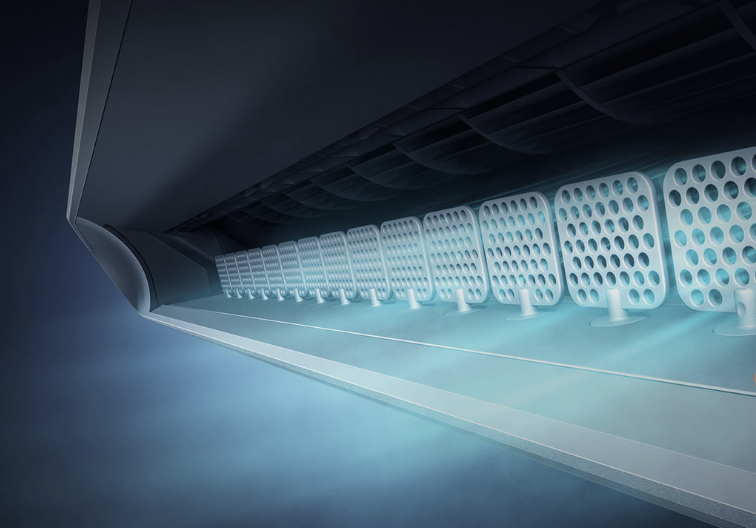 99% степень удаления кишечной палочки и белого стафилококка. Самоочистка наружного блока использует конденсационную воду для промывки поверхности теплообменника от пыли, снижая тепловое сопротивление, повышая эффективность и обеспечивая стабильную работу кондиционера.